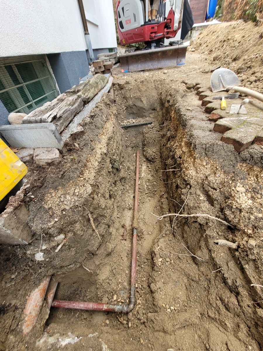 Excavation de la terre avec travaux d'étanchéité suivis de la remise en état du jardin.