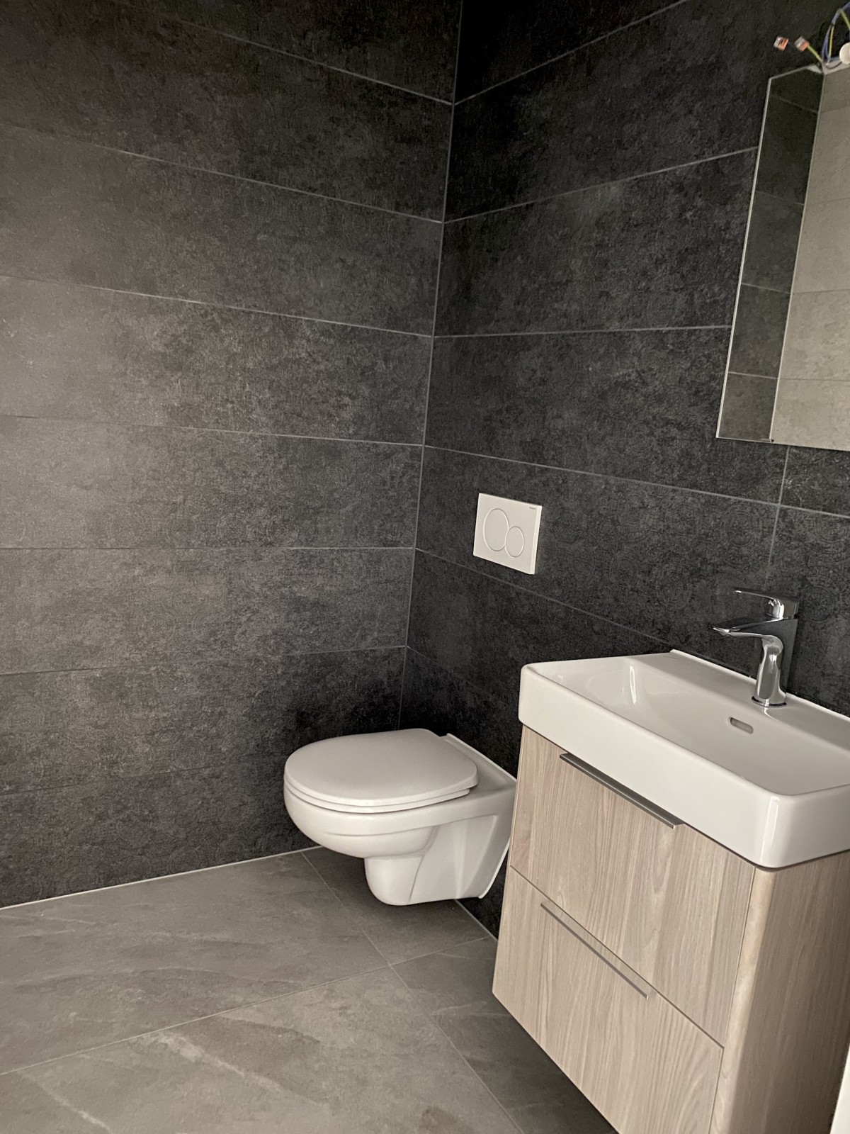 Rénovation de salle de bain Carrelage au sol 60/60 avec du carrelage au mur de 30/60