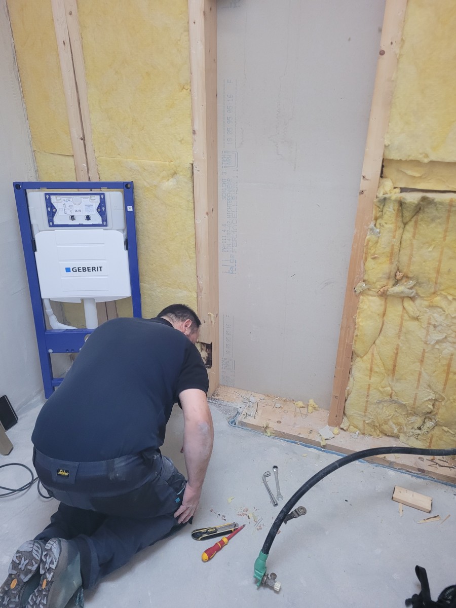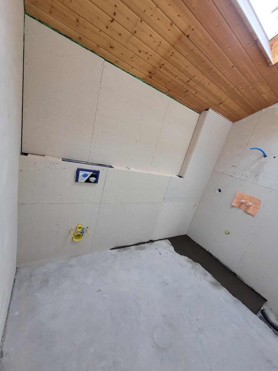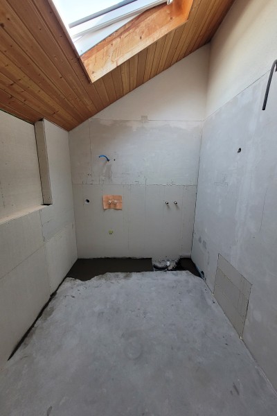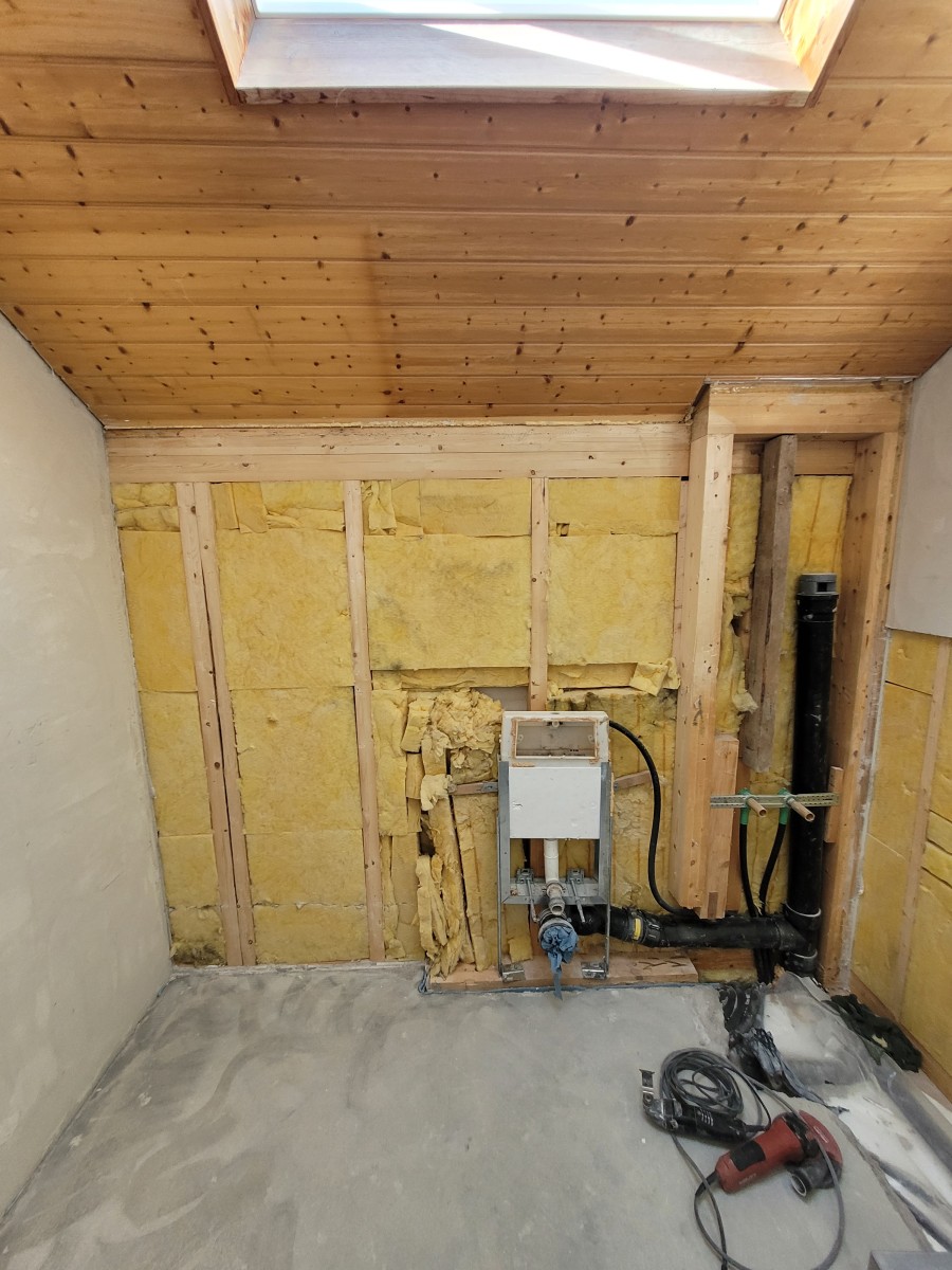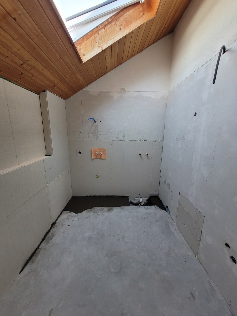 La salle de bain reste encore a terminer mais le sanitaire et l’électricien veille au grain.