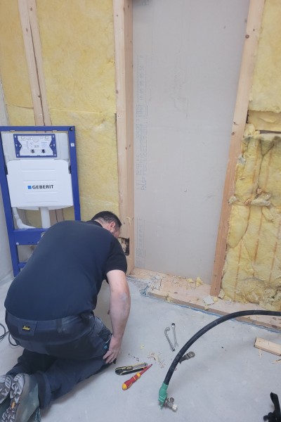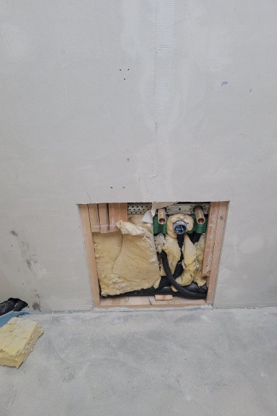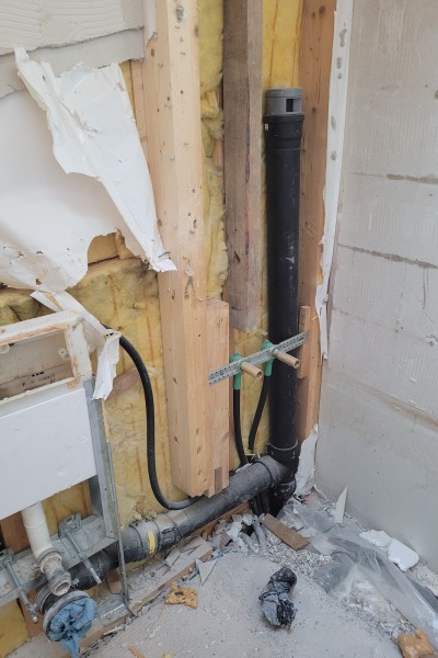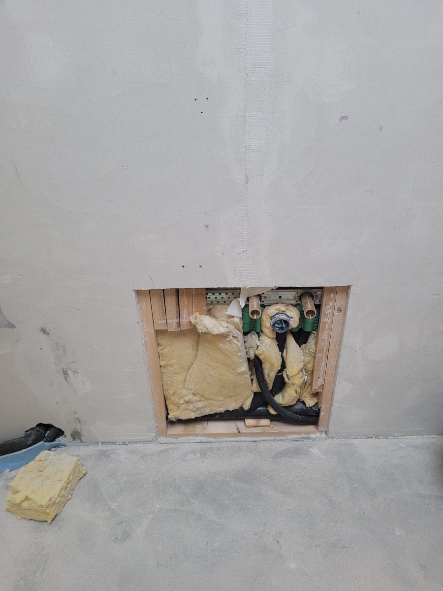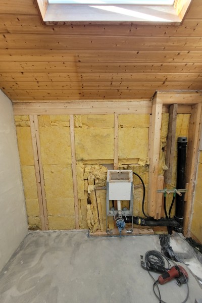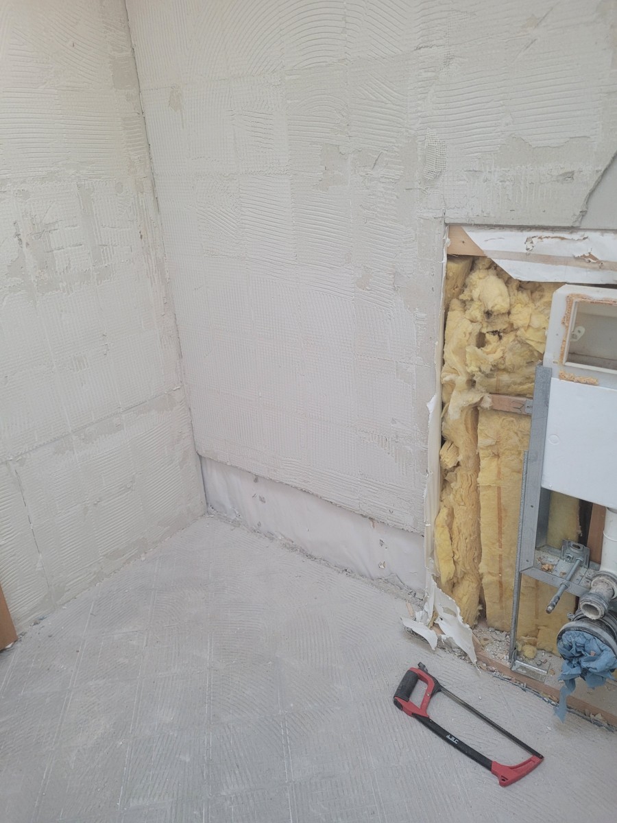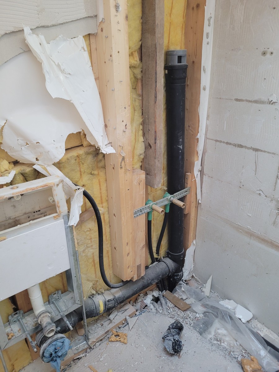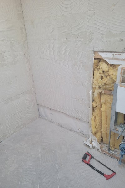 Nous avons commencé par des sondages de mur pour localiser des divers tuyaux sanitaires et électriques.