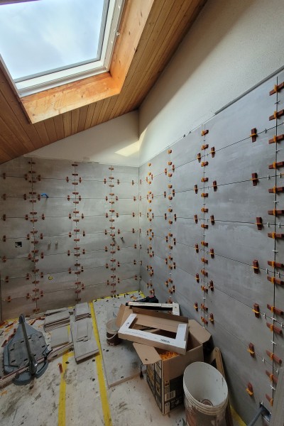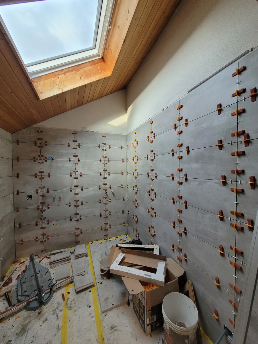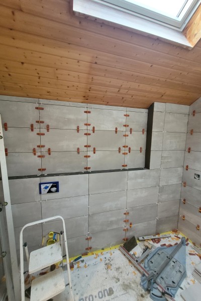 Les modifications réalisées, nous avons pu reconstruire les murs, et commencer le calepinage.